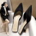 Dép nửa bít mũi sa tanh mới của phụ nữ giày muller mũi nhọn dép lê gót thấp giày mũi nhọn dép lê mũi nhọn miệng nông dép lê mũi nhọn phong cách Hàn Quốc thanh lịch giày gót thấp giày muller m